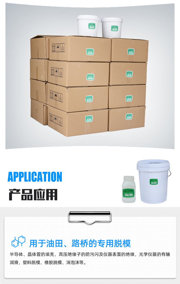 | 一.產品說明:半透明乳白稠狀液體 型號: 5201-2,5201-3 二、性能介紹:耐熱、耐寒,稠隨溫度變化小,防水性能好,可在物件表面形成防水膜,化學穩定性能好,可在物體表面形成防水膜,化學穩定性、除強酸、強堿外對一般金屬及化學藥品無作用,生理惰性為無*。 三、用途:用于油田.路橋的*脫模,半導體、晶體管的填充,高壓絕緣子的防污閃及儀器表面的絕緣,光學儀器的有軸潤滑,塑料脫模、橡膠脫模、消泡沫、橋梁支座等。 四.技術指標:企業標準