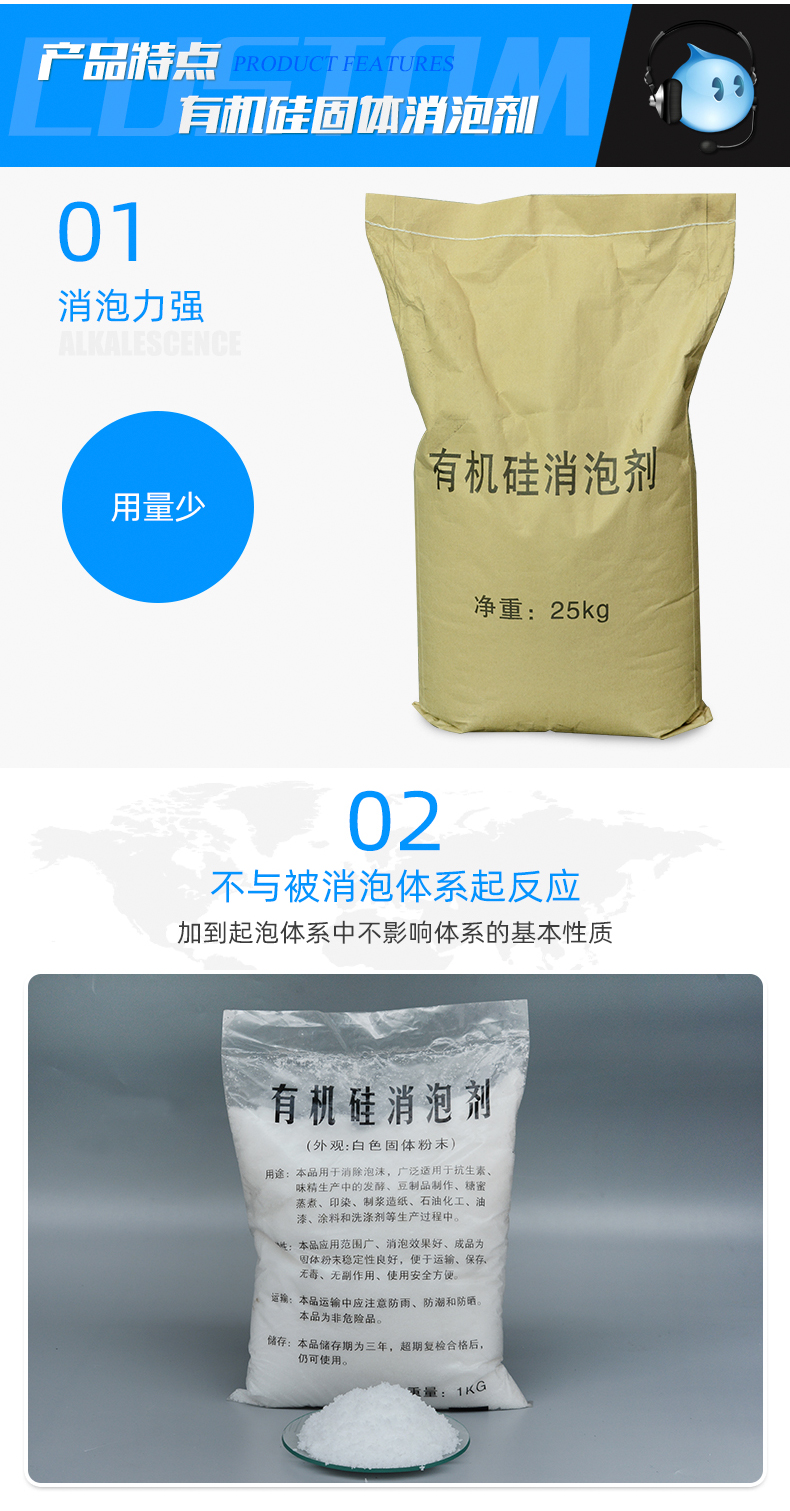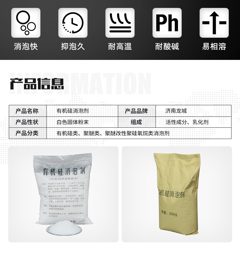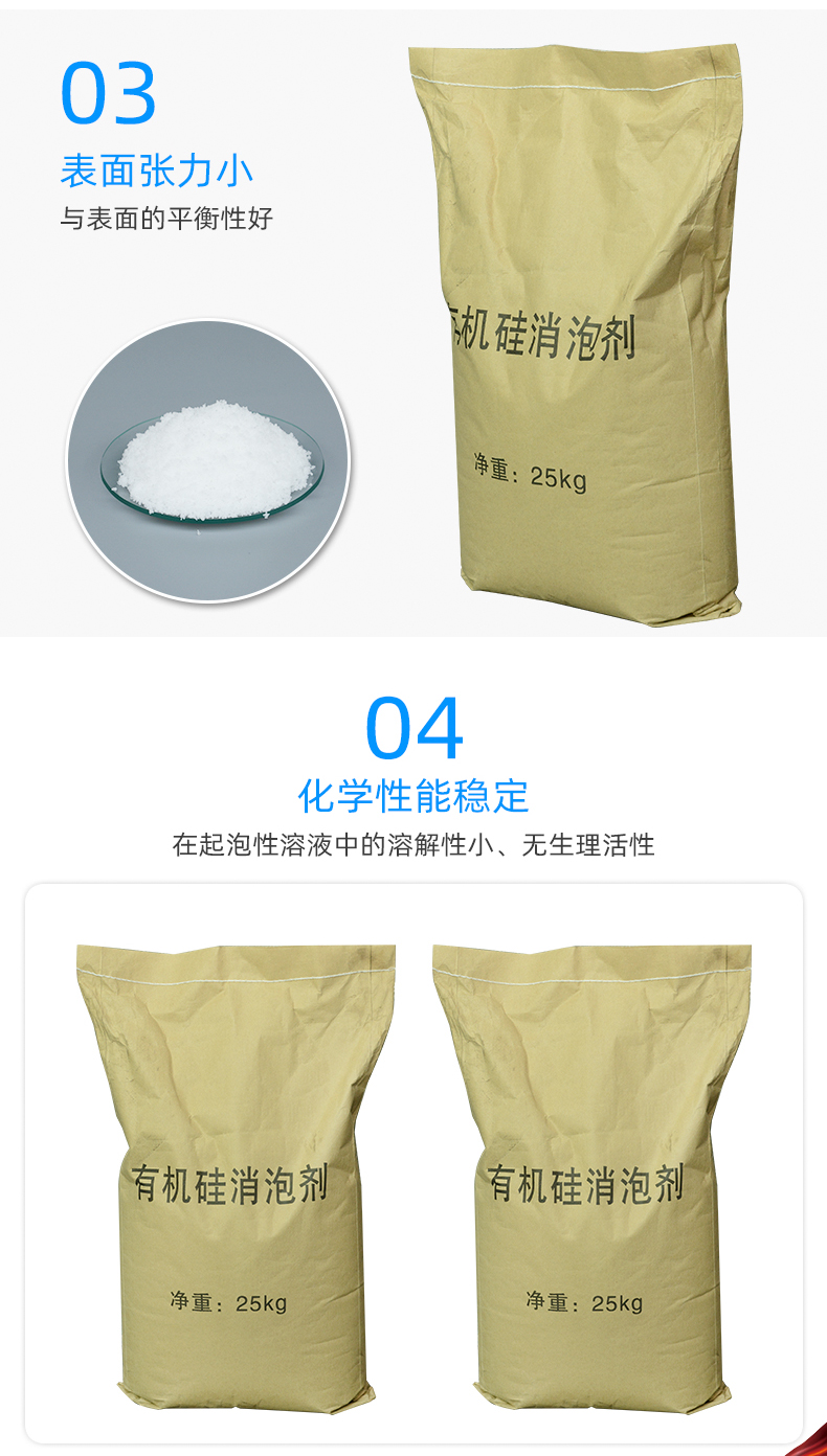 具有消泡力強、抑泡時間長、用量少、使用方便等特點,是一種既具有持久抑泡又具有迅速消泡性能的高效消泡劑。